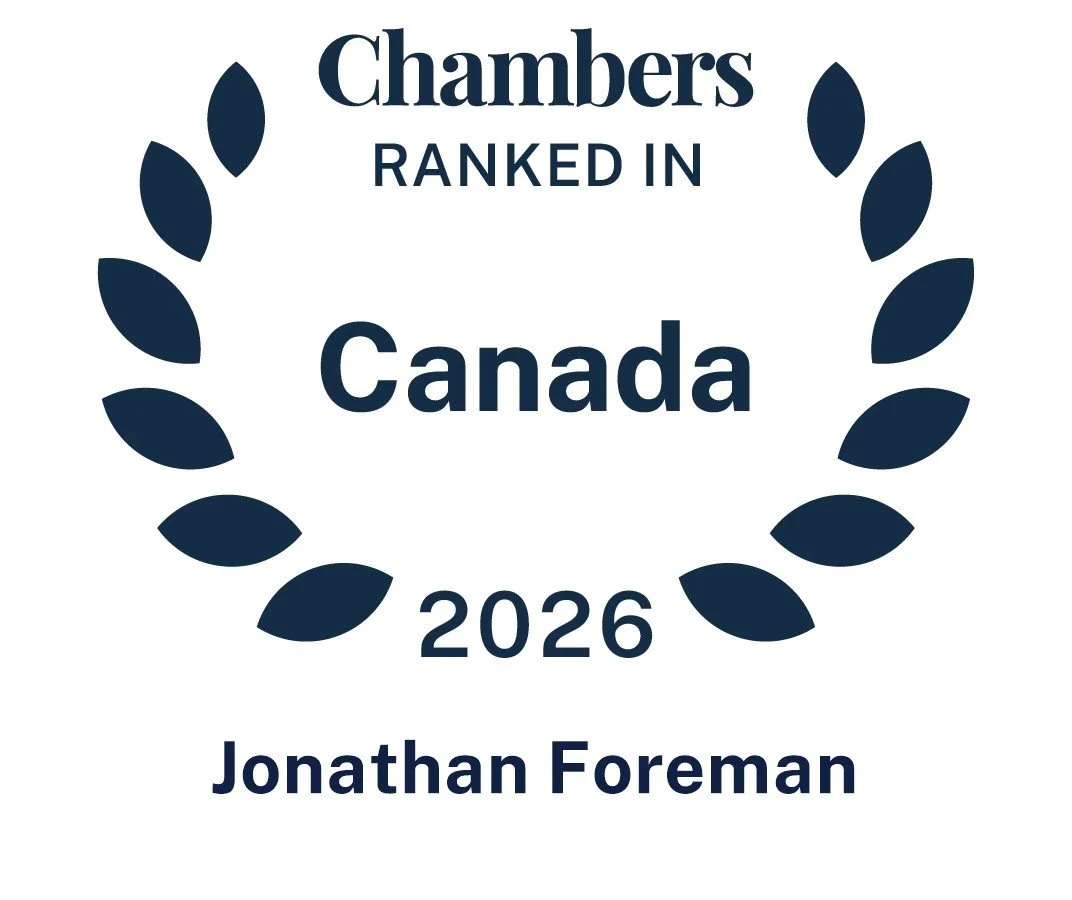 We are happy to share that our founder Jon Foreman and our firm, Foreman & Company, were each ranked in Chambers & Partners' prestigious annual rating of top plaintiff-side Class Action lawyers and law firms in Canada.